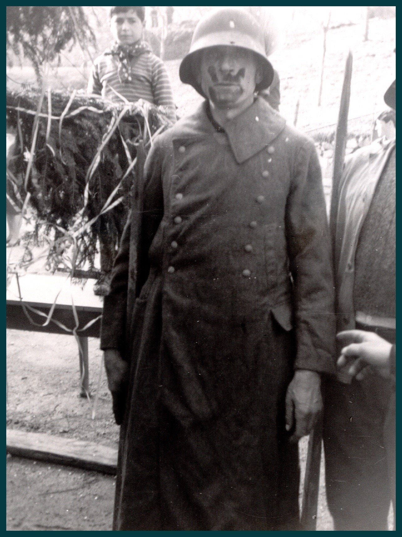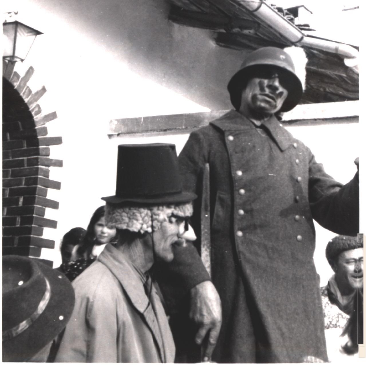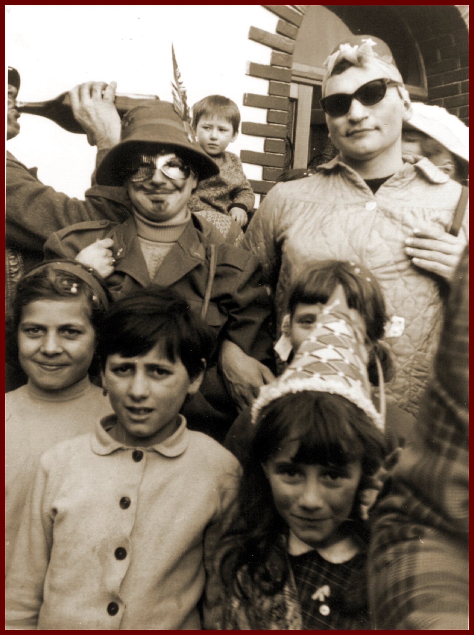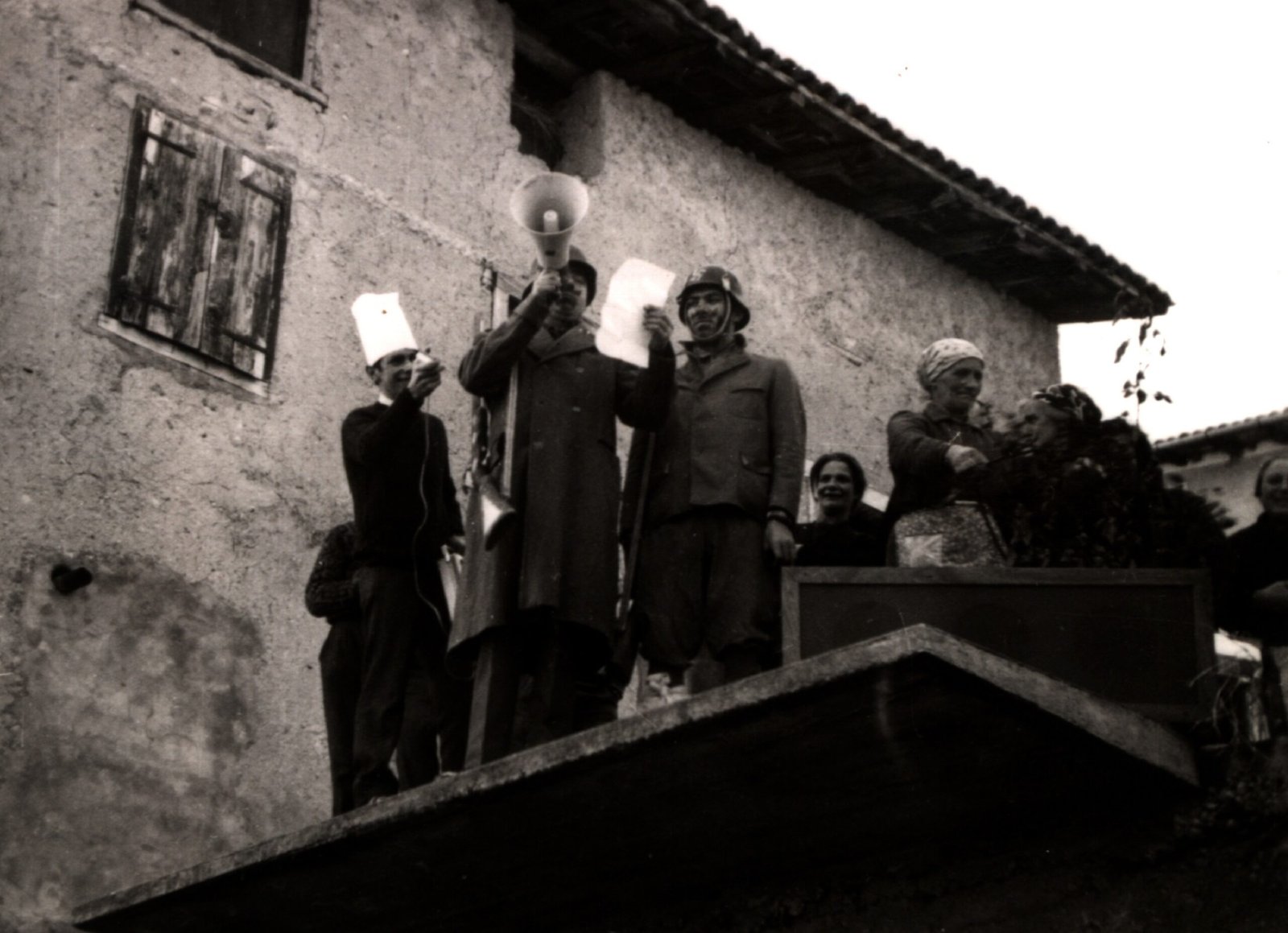 Anche gli uomini, e sottolineo uomini perché allora le donne non partecipavano alla baldoria, erano mascherati alla bene meglio, ossia alla “vate ciava” soprattutto per la mancanza di indumenti idonei allo scopo, ma importante era festeggiare il carnevale; mi sovviene ora il particolare di un tale che si era trasformato in un infante coricato all’interno della slitta, in un giaciglio dotato di coperte di lana, con in testa una cuffietta e in bocca un succhiotto applicato ad un bottiglione di vino.