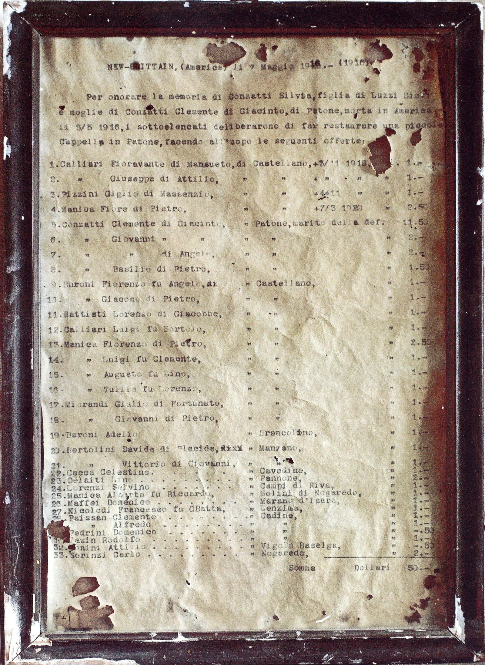 Silvia Luzzi, deceduta in (U.S.A) nel Connecticut il 5 maggio 1916.
